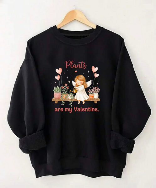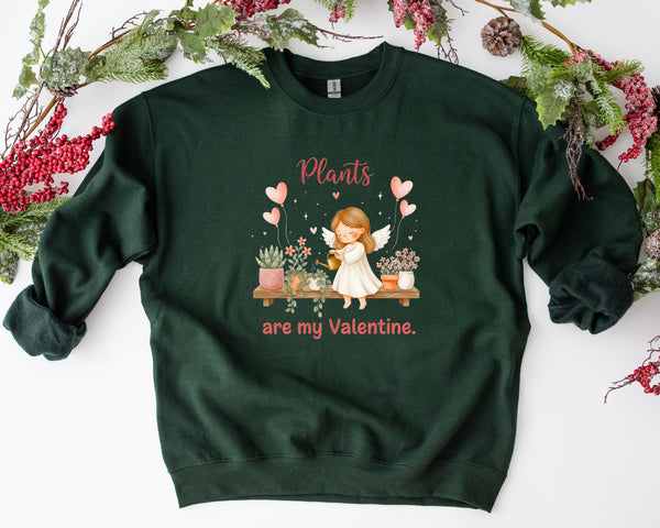 This cozy green sweatshirt features a sweet illustration of an angel gently watering plants, paired with the phrase “Plants Are My Valentine.” It’s a soft, whimsical, and heartfelt design made for true plant lovers.